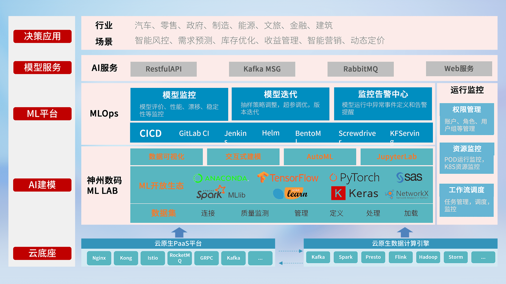 数据+模型双引擎驱动,,,面向智能服务场景,,,快速灵活利用AI技术,,,支持业务决策,,,,助力企业智能化转型破局。。